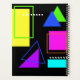 Motif graphique géométrique coloré couleur néon coloré et design des années 80 rétro tendance. Conçu en noir, cet imprimé néon fluorescent tendance des années 80 a une impression géométrique composée de carrés fluoro colorés, lignes, triangles, cadres et rectangles de couleurs chaudes vertes, bleues, roses, violettes, bleues et oranges. Ce motif de mode des années 1980 plairait à tous ceux qui aiment les années 80, les modèles rétro vintage des années 80, ou tout simplement les couleurs néon brillantes et audacieuses ou les motifs et impressions géométriques. Il y a aussi de l'espace pour le texte personnalisé dans une police d'écriture manuscrite de style années 1980.