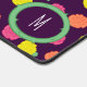 Des roses stylisés en rose néon, bleu, jaune et corail avec des feuilles vert néon sont répartis sur un arrière - plan violet profond pour créer un motif floral amusant. Customisez le monogramme dans le cercle avec votre initiale pour créer un tapis de bureau unique pour votre travail ou espace de jeu.
