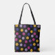 rose néon, jaune et violet sur motif noir pickleball, Sac fourre-tout texte personnalisé. Parfait comme cadeau pour joueur de pickleball. Texte personnalisable.