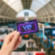 The design combines bold “VIP ALL ACCESS” typography with a high-tech background pattern and cinematic lighting effects, creating a premium backstage pass feel. The matching back side includes event details and a scannable code area, making it perfect for realistic concert badges, DJ passes, and event credentials.