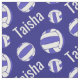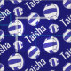 Sport netball personnalisé avec motif rayé bleu tissu design sportif. Boules blanches et bleues et couleur arrière - plan bleu foncé qui peuvent être changées si nécessaire. Idéal pour les joueurs de netball, les entraîneurs et les fans de netball. Personnaliser avec votre propre choix de nom, actuellement lit Taisha. Art graphique et dessiné par Sarah Trett pour www.mylittleeden.com