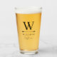 Monogrammed verre de bière pour votre meilleur homme avec son premier sommet son nom dans un design simple et minimaliste et son rôle dans la fête de mariage dans un script décontracté.