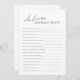 Voici notre neutre qui connaît maman la meilleure carte de jeu de baby shower pour n'importe quelle saison, que ce soit l'automne, l'hiver, le printemps ou l'été! Cette carte de jeu a une ambiance boho-chic avec une calligraphie moderne et élégante et un design minimaliste noir et blanc. C'est joli et unique, avec une touche de chic vintage et froissé, parfait pour les garçons comme pour les filles. De plus, il est modifiable, de sorte que vous pouvez ajouter votre propre touche chic et fantaisiste pour créer une papeterie personnalisée vraiment belle et délicate pour votre événement. N'hésitez pas à nous contacter pour toute question concernant la conception du produit ; nous sommes heureux de vous aider !