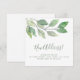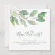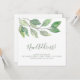 This square moving announcement card is decorated with minimalist watercolor greenery and stylish green script typography. Easily customizable. Original Watercolor © Michele Davies.