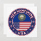 Insigne du New Hampshire avec drapeau du New Hampshire et drapeau des couleurs des USA, forme arrondie. Emblème du New Hampshire. Sceau du New Hampshire. Collection USA Etats.