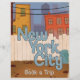 New York City "Réservez un voyage aujourd'hui" humoristique poster de voyage de dessin animé.