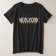 Design de style rétro New York Manhattan avec skyline de ville cool avec palmiers et bâtiments urbains. Une combinaison parfaite pour votre prochaine escapade citadine, voyage en ville ou vacances d'été ou tout aussi facile à la mode quotidienne.