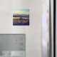 Un aimant qui représente l'horizon du centre de Manhattan depuis l'eau, au coucher du soleil.