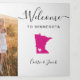 Bienvenue aux invités à votre mariage avec cette carte tri-pliée. Il y a beaucoup de place pour inclure votre itinéraire, des suggestions de restaurants, des choses à faire et des informations de contact. Il y a de la place pour une photo au dos de la carte. Tout le texte peut être customisé, y compris le titre. Vous pouvez modifier les couleurs pour n'importe quelle partie de ce design, ainsi que déplacer le coeur à l'emplacement de votre mariage. Pour modifier les couleurs, cliquez sur personnaliser, puis sur "modifier à l'aide de l'outil de conception". Sélectionnez l'élément à modifier, puis utilisez les outils pour effectuer les modifications.