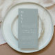 Ce menu mariage présente un mélange de couleurs vert sage et un design moderne et minimaliste. Modifiez facilement tous les libellés et les polices pour correspondre au style de votre événement.
