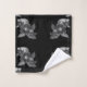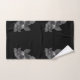 Cette oeuvre présente un motif de motifs floraux en nuances de gris dressé contre un arrière - plan noir profond, créant un ensemble de serviettes de bain dynamique et élégant.