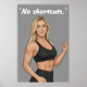 This fitness motivation poster delivers a simple but powerful message: results come from consistency, discipline, and hard work. The bold quote “No shortcuts” paired with a strong athletic illustration makes this design perfect for anyone serious about their fitness journey.