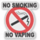 No Smoking No Vaping avertissement autocollant avec des icônes pour cigarette et e-cigarette et barre rouge, pour affaires, événement, bâtiment public.