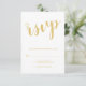 Carte RSVP de Mariage Or Script moderne avec titre en écriture or moderne avec détails en or moderne sans serif police sur arrière - plan blanc. Remarque : Les détails du papier sont simulés dans l'illustration. Il n'y aura pas de métal sur ce produit.