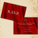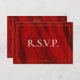 Un mariage rouge très élégant RSVP avec un motif de soie rouge ondulante, qui a également un cadre double or et une paire d'anneaux mariages dorés au sommet. Vous pouvez également consulter l'invitation correspondante qui accompagne cette RSVP, ici : https://www.zazzle.com/red_silk_and_gold_wedding_invitation-256502014561239887