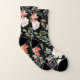 Poinsettias et roses blanches aux baies saintes et aux guépards ornent ces chaussettes de vacances d'hiver colorées.