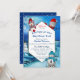 Une scène de vacances d'hiver bleu avec un showman bien emballé pour une carte d'invitation à personnaliser