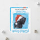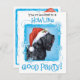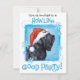 Invitation tous vos amis à une fête de Noël Howling Good avec cette invitation montrant un joli Terrier russe noir portant un chapeau de Père Noël au milieu d'un tas de flocons de neige. Bonne fête de Howliday !