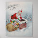 Scène vintage de Père Noël et son sac de jouets sur un toit prêt à descendre la cheminée...texte A Christmas Hello poster.
