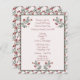 Une jolie soirée folklorique scandinave invitant à la fête de Noël rose pâle avec des détails floraux roses et bordeaux et verts. Les détails sont enfermés dans un cadre vert qui a des fleurs dans les coins supérieurs et le fond.