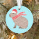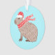Cet ornement de Noël présente une jolie et drôle d'illustration d'un capybara de Noël portant un chapeau de Père Noël et une écharpe d'hiver ! Un ornement amusant et unique pour un amoureux des animaux.