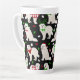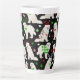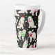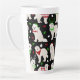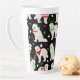 De mignons chiens des Grands Pyrénées habillés de tenues de vacances festives, de chapeaux de Père Noël et de chandails de Jacquard avec motif de décorations de Noël éparpillées.