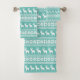 Belle serviette de Noël turquoise côtière avec de jolis rennes et des flocons de neige blancs sur un motif de vacances mignon et branché. Un cadeau chic de cerf vert de mer pour une fille de l'île qui aime la plage d'hiver maison décoration de salle de bain.