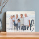 La carte de vacances chic de style côtier ajoute une touche de plage à vos voeux de Noël. Parfait pour partager une photo de vacances, ou pour les familles qui vivent dans les régions côtières, tropicales, chaudes ou les îles, ce design élégant comprend votre photo horizontale ou paysagère préférée avec "noel" recouvert de lettrage bleu côtier et un dollar de sable prenant la place de la lettre "o". Ajoutez votre message de vacances personnalisé et votre nom ou nom de famille, ainsi que deux photos et un message personnalisé au dos.