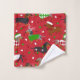 Chiens de Noël mignons avec des manteaux noirs, tans et dapple habillés de tenues de vacances festives, chapeaux de Père Noël et chandails de Jacquard avec motif d'ornements de Noël éparpillés.