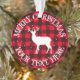 Le bison rouge rustique plaid cerf de Noël ornement d'arbre de Noël. Vintage animal silhouette design pour amis, famille, couple, petit ami, petite amie, enfants, nouveau bébé etc. Téléchargez votre propre photo sur le dos. Dessin de rennes avec neige et accueil personnalisé avec photo personnalisée sur le côté arrière. Impression recto verso avec ruban. Couleur arrière - plan rouge ou personnalisée.