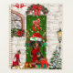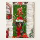 Dachshund Dog assis à l'extérieur de la maison décorée avec la couronne de Noël, le sapin de Noël est une idée cadeau de Noël parfait pour les amoureux de les chiens.