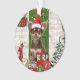 Chihuahua Chien assis à l'extérieur de la maison décorée avec la couronne de Noël, le sapin de Noël est une idée cadeau de Noël parfaite pour les amoureux de les chiens.
