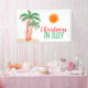 Fêtons Noël en juillet avec un barbecue ou une fête ! Famille Invitation et amis à votre fête de Noël et décorez-la avec cette bannière de style île avec des palmiers dessinés à la main et décorés de lumières. Dessin original © Michele Davies.