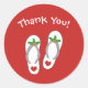 Noël en Juillet Vacances autocollants de flip flop de plage. Jolie enveloppe rouge ronde scellés pour la fête de Noël. Accessoires personnalisés. Des sandales à la feuille de houx et aux baies plus coeur. Ajoutez vos propres saisons de salutation ou de message de remerciement.