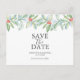 Ce mariage de Noël sauve la date carte postale dispose d'une haute frontière d'élégante aquarelle verdure d'hiver. Les mots "Save the Date" sont tapés en gris fusain sur un arrière - plan blanc immaculé. Utilisez les champs modèle pour ajouter vos informations personnalisées. Pour en savoir plus, enregistrez les dates et le thème mariage complet, visitez le www.zazzle.com/dotellabelle Unique aquarelle vert feuillage art et design par Victoria Grigaliunas. Pour un message de recherche plus sur-mesure, regardez-moi pour plus d'informations.