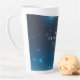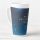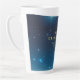 Tasse en latte de Noël avec étoiles. Grande buvette avec un thème de vacances. Idéal aussi pour des fêtes de vacances, des événements d'affaires, des galas ou des occasions spéciales. Couleurs bleu et or. Utilisez le modèle pour créer votre propre tasse de latte de Noël.