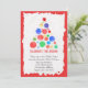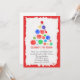 Une invitation amusante à la fête de Noël représentant un arbre de Noël en billes colorées d'aquarelle à cadre rouge.