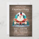 Invitation Noël Fête de Fêtes. Dîner de Noël Invitation de fête de Noël. Fleurs florales de Noël couronne. Père Noël. Cerf. Arbre de Noël. Arrière - plan rustique en bois. Country Vintage Retro. Pour plus de personnalisation, cliquez sur le bouton "Customiser" et utilisez notre outil de conception pour modifier ce modèle.