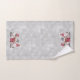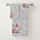 "Christmas Gnome Scandinavian Love Joy Peace Grey Serviette de bain Gray Set." Jolie conception adaptée à l'utilisation tout au long de l'hiver, ces adorables gnomes de Noël rouge et gris partagent leur message d'amour, de joie et de paix pour égayer votre salle de bain. Fabriquée à partir de peintures aquarelles par Audrey Jeanne Roberts, artiste et designer de renommée internationale, copyright.