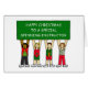 Quatre personnages de dessin animé dans l'usage modelé de fête de sports, retardant un signe vert-foncé qui indique "Noël heureux à un instructeur de rotation spécial".