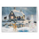 Winter Wonderland Christmas Cottage and Deer Scene Carte de vacances. Création artistique © Tyra OBryant