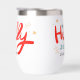 Christmas Holly Jolly Fun Winter Nom personnalisé Wine Tumbler dispose du texte "Holly Jolly en rouge et bleu typographie de script de calligraphie moderne et personnalisée avec votre nom personnalisé. Accenté de saints et de flocons de neige. Cadeaux parfaits pour Noël et les fêtes de Noël ou pour les fêtes de Noël. Conçu par ©Evco Holidays www.zazzle.com/store/evcoholidays