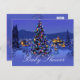 Noël, invitations à la douche nuptiale de vacances. Élégant et classique, parfait pour vos fêtes de vacances. Un monde bleu neigeux avec un arbre de Noël coloré et des maisons d'éclairage de famille, des arbres à feuillage persistant d'hiver et un bonhomme de neige, un tableau vintage de Noël divin et paisible mettra tout le monde dans l'humeur de Noël, et apportera les sentiments heureux et chaleureux de vacances.