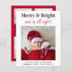 Joli faire-part de naissance de vacances de Noël économique avec la photo de votre nouveau-né, "Merry & Bright and up all night !" écrit dans un mélange d'élégante typographie et un script rouge élégant et le nom et les statistiques de naissance de votre bébé. Au verso, ajoutez trois photos supplémentaires et un message saisonnier personnalisé.