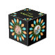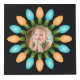 Ce cube photo avec 4 images faciles à éditer a un thème de vacances avec des cercles graphiques colorés d'ampoules festives de Noël en bleu et orange. Le texte peut être personnalisé. Espace réservé Crédit photo : Photographie © Storytree Studios, Stanford, CA