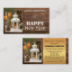 Carte de visite avec une lanterne éclairée à la bougie avec un cône de pin et des boules de Noël dorées sur un arrière - plan en bois rustique, avec vos souhaits de vacances personnalisés. La zone d'arrière - plan de texte doré au dos peut être supprimée si vous n'en avez pas besoin. Ce carte de visite est une belle façon de dire merci aux clients existants ou bienvenue dans de nouveaux clients.