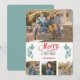 Cette carte de Noël à plat modèle photo met vos photos au centre de la scène, avec la photo supérieure étant plus grande, et les trois photos du bas étant des cultures carrés. Les photographies sont en blanc, avec le milieu avec une aquarelle turquoise bleue et rouge baies sainte sprig de chaque côté. Au centre est stylisé rouge et texte turquoise qui dit "Joyeux Noël". Votre signature personnalisée se trouve sous le texte de salutation. Le dos de la carte est solide assorti bleu gris. *Crédit photo : Photographie © Storytree Studios, Stanford, CA.