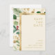 Cette carte postale moderne de Noël "save the date" à fond crème est parfaite pour votre mariage d'hiver simple et bohème. Conçue avec un motif géométrique à motif de feuille d'or faux et une aquarelle botanique minimaliste avec des touches d'eucalyptus vert et de baie d'hiver rouge. Le tout sur un fond crème classique. Ces éléments lui donnent une sensation moderne et élégante qui est sûre de compléter le look que vous recherchez ! Vous pouvez la personnaliser avec vos propres photos ou la garder telle quelle. N'oubliez pas de parcourir le reste de la collection pour compléter votre thème de mariage !