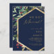 Ce Noël moderne | navy elopement faire-part est parfait pour votre simple elopement d'hiver boho. Conçu avec une feuille d'or imitation géométrique et une aquarelle botanique minimaliste avec des touches d'eucalyptus vert et d'airelle rouge. Le tout sur un arrière - plan bleu marine classique. Ces éléments lui confèrent une atmosphère moderne et élégante, qui ne manquera pas de compléter le look recherché ! Vous pouvez personnaliser avec vos propres photos ou le garder tel quel. N'oubliez pas de parcourir le reste de la collection pour compléter votre thème mariage !
