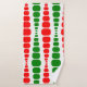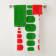 Cet ensemble de serviettes a un design moderne du milieu du siècle de rectangles ronds rouges et verts de taille croissante et décroissante courant verticalement sur un champ de blanc.